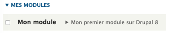 - Doit contenir au minimum le fichier .info.yml décrivant le titre du module, la version du core de Drupal 8 et le type.